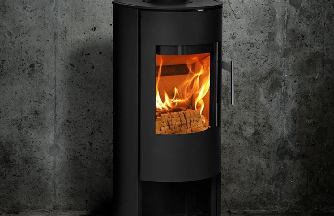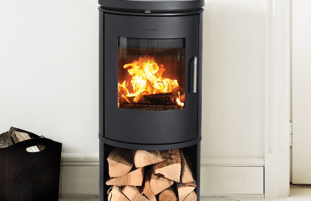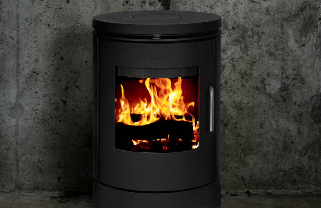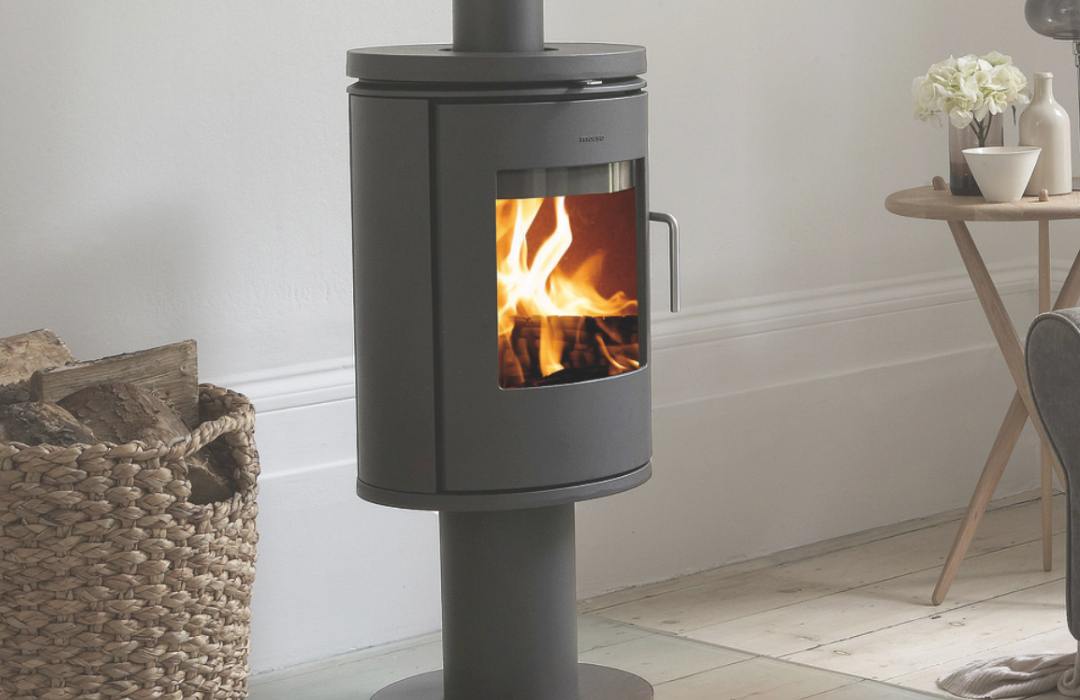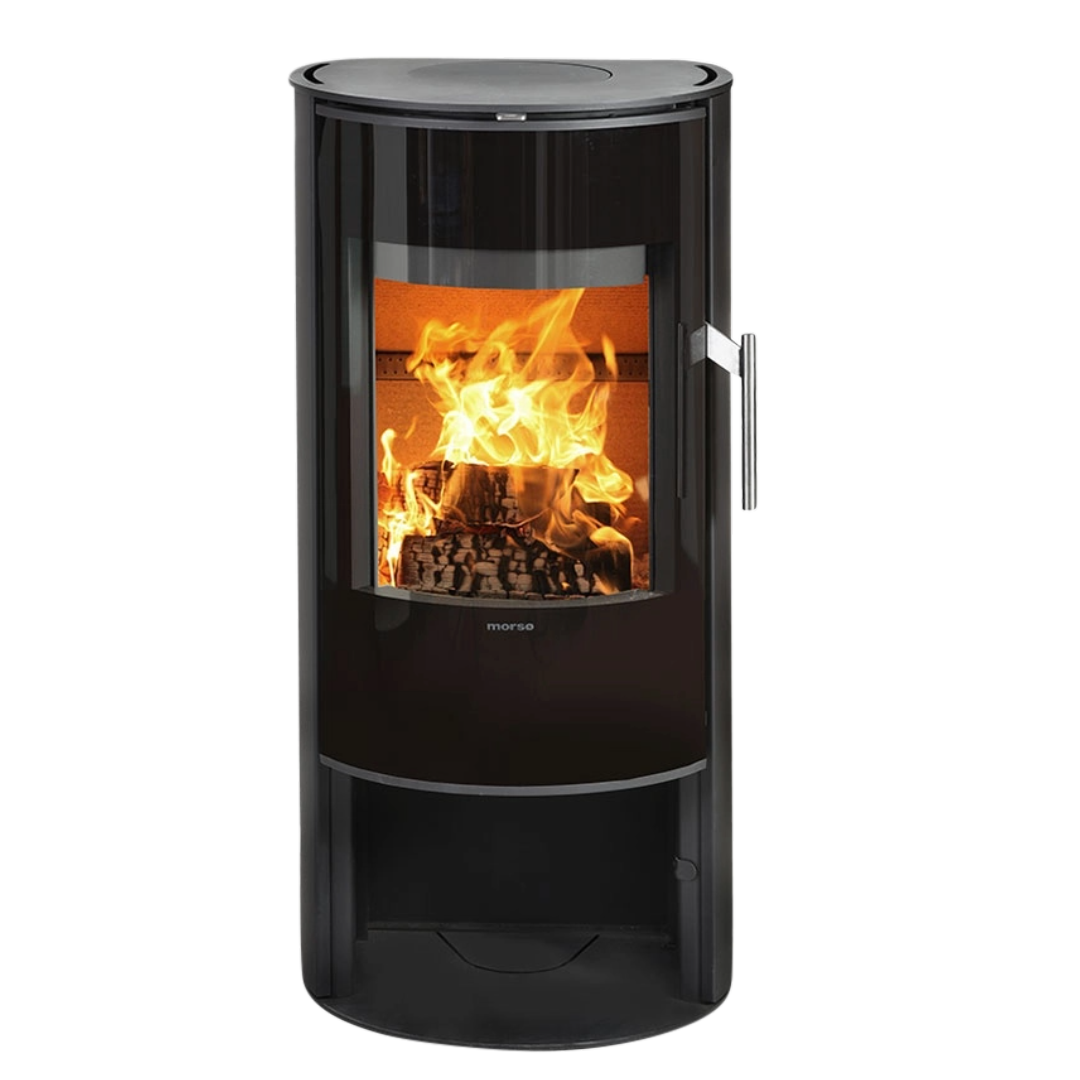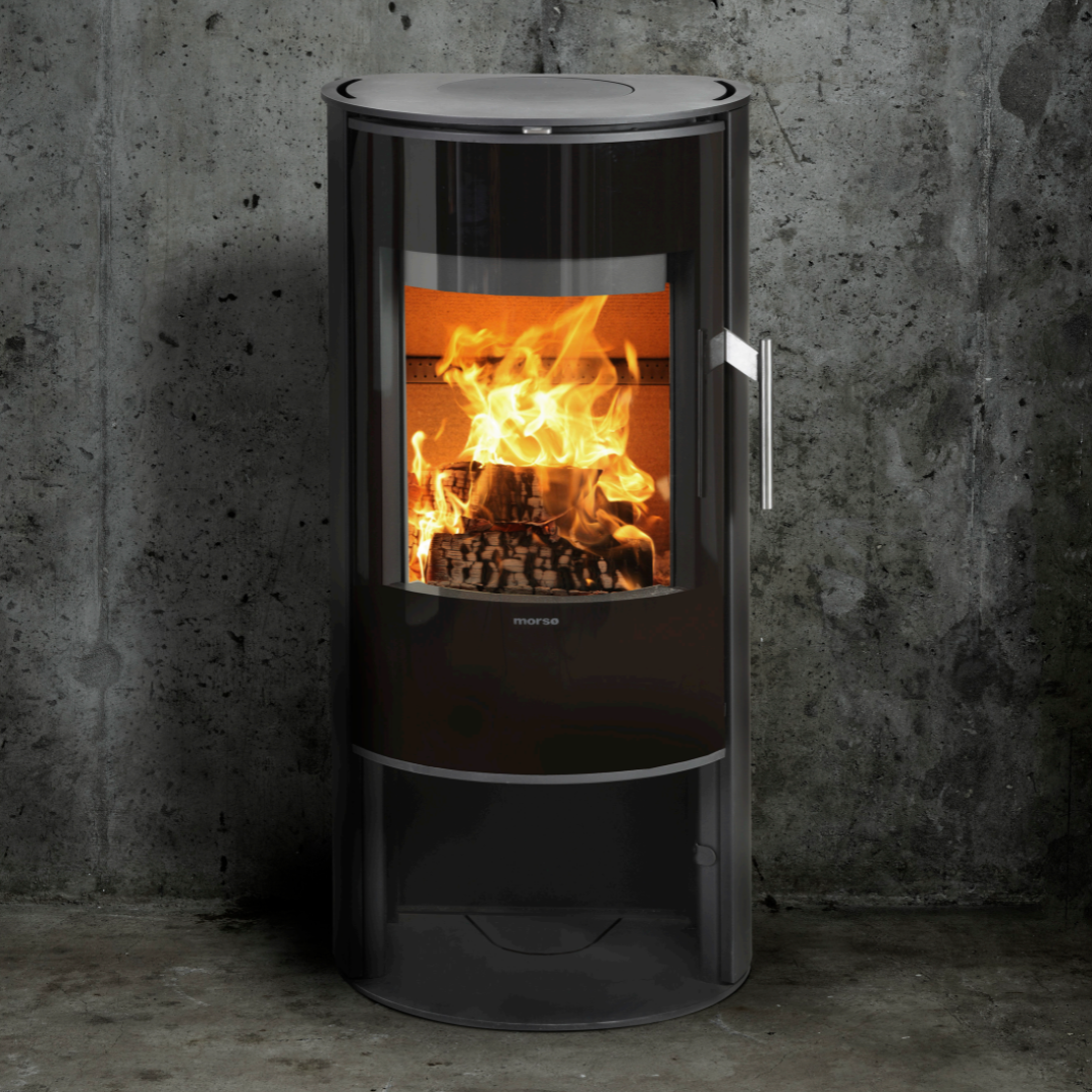 Morsø wood burning stove 6148 stands like a sculpture on its pedestal. A stove with a timeless and minimalist design, and a large glass door that provides an excellent view of the dancing flames.